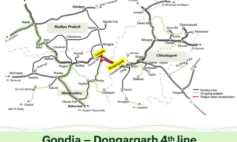 इनमें दक्षिण पूर्व मध्य रेलवे के अंतर्गत आने वाले गोंदिया–डोंगरगढ़ खंड की चौथी रेल लाइन परियोजना भी शामिल है, जिसकी लंबाई 84 किलोमीटर और अनुमानित लागत 2,223 करोड़ रुपये है। यह खंड महाराष्ट्र के गोंदिया और छत्तीसगढ़ के राजनांदगांव जिलों से होकर गुजरेगा, जिसमें राजनांदगांव एक आकांक्षी जिला है।
