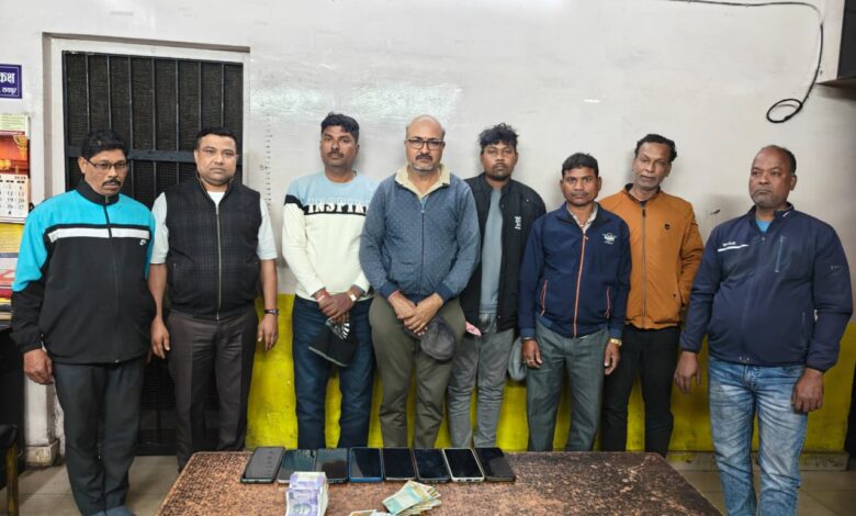 रायपुर । राजधानी रायपुर में जुआ और सट्टा के अवैध कारोबार के खिलाफ पुलिस ने अपनी कार्रवाई तेज कर दी है। सोमवार को रायपुर पुलिस की ‘एण्टी क्राईम एण्ड साईबर यूनिट’ (ACCU) और थाना खमतराई की संयुक्त टीम ने गोंदवारा इलाके में एक बड़ी कार्रवाई को अंजाम दिया। पुलिस ने मारूति स्टील के पास जुआ खेलते हुए 8 जुआरियों को रंगे हाथों गिरफ्तार किया है।
