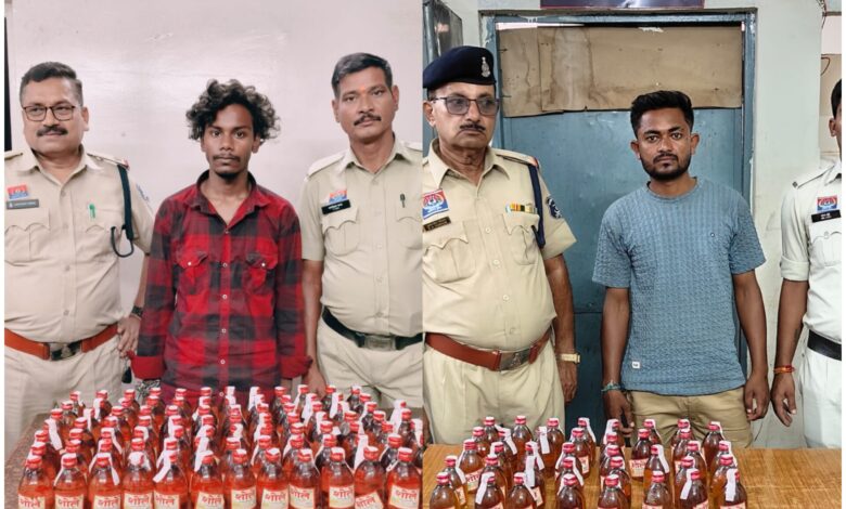 रायपुर । रायपुर पुलिस ने अवैध शराब के खिलाफ अभियान के तहत दो अलग-अलग मामलों में कार्यवाही करते हुए दो आरोपियों को गिरफ्तार किया है। खमतराई थाना क्षेत्र में अभयराज मानिकपुरी को 87 पौवा देशी मदिरा मसाला के साथ पकड़ा गया, जबकि मंदिर हसौद थाना क्षेत्र में नेमीचंद धृतलहरे को 40 पौवा देशी शराब के साथ गिरफ्तार किया गया।