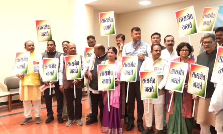 Breaking: ‘सत्यमेव जयते’ की तख्ती लेकर सदन पहुंचे कांग्रेस विधायक, नारेबाजी के बाद विधानसभा से निलंबित