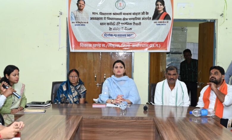 पंडरिया। छत्तीसगढ़ में आगामी 15 नवंबर से शुरू होने वाली धान खरीदी को लेकर पंडरिया क्षेत्र में तैयारियां तेज हो गई हैं। इसी क्रम में पंडरिया विधायक भावना बोहरा ने आज जनपद पंचायत सहसपुर लोहारा में विभागीय अधिकारियों, जनपद अध्यक्ष, उपाध्यक्ष, और सभी जनपद सदस्यों के साथ एक महत्वपूर्ण बैठक कर तैयारियों का बारीकी से जायजा लिया।