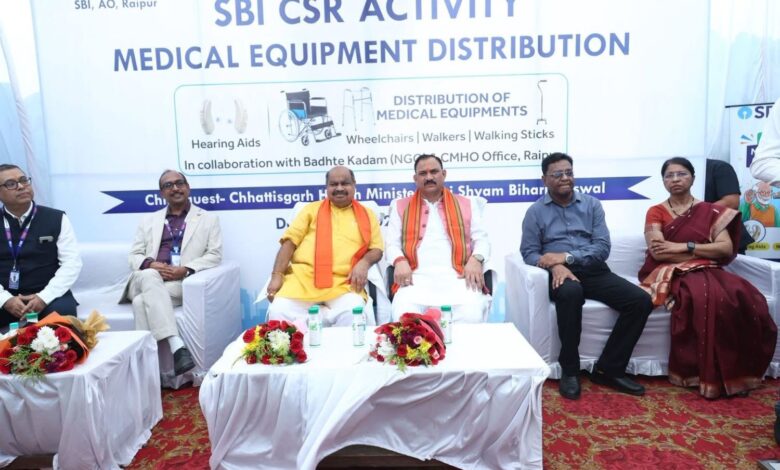रायपुर । रायपुर के जिला अस्पताल में आज भारतीय स्टेट बैंक (SBI) द्वारा कॉर्पोरेट सामाजिक उत्तरदायित्व (CSR) के अंतर्गत आयोजित चिकित्सा उपकरण वितरण कार्यक्रम में उत्तर विधानसभा क्षेत्र के लोकप्रिय विधायक पुरन्दर मिश्रा जी ने प्रदेश के स्वास्थ्य मंत्री श्याम बिहारी जायसवाल के साथ गरिमामयी उपस्थिति दर्ज कराई।