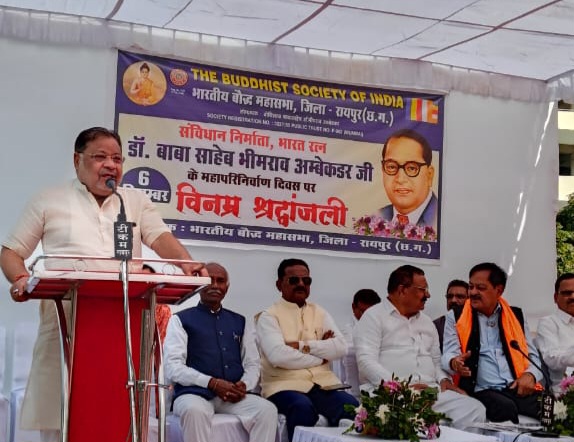 रायपुर ।आज संविधान निर्माता भारत रत्न डॉ. भीम राव अंबेडकर की पुण्यतिथि के अवसर पर राजधानी रायपुर में उन्हें सादर नमन किया गया। रायपुर नगर पालिक निगम के संस्कृति विभाग ने नगर निगम जोन 4 के सहयोग से जी. ई. मार्ग, जिलाधीश कार्यालय के सामने स्थित डॉ. अंबेडकर की प्रतिमा स्थल के समक्ष एक संक्षिप्त पुष्पांजलि कार्यक्रम का आयोजन किया।