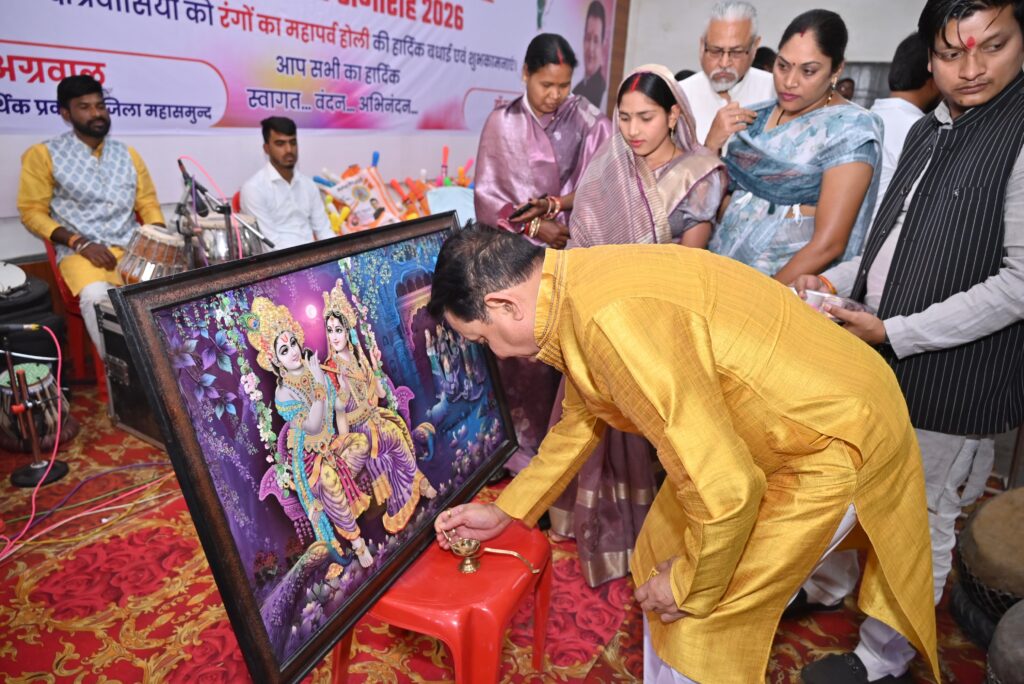 कार्यक्रम का औपचारिक आगाज़ विधायक डॉ. संपत अग्रवाल द्वारा भगवान राधा-कृष्ण के तैलचित्र पर दीप प्रज्वलन और विधिवत पूजा-अर्चना के साथ किया गया। उन्होंने प्रदेश की सुख-समृद्धि और शांति की कामना करते हुए उपस्थित जनसमूह को प्रेम के रंगों में सराबोर होने का संदेश दिया।